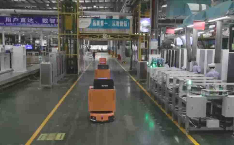 为车载冰箱物流配送打造的智能解决方案,,包含产中物流通过潜伏举升AMR搬运至线边,,产后成品物流智能仓储,,,,流程包含产中物流智能齐套入库,,,线边安灯叫料AMR智能配送至线边,,,成品入库、、、、出库,,通过无人堆高车机器人,,,,智能仓储管理替代人工作业管理,,,实现更高存储、、、、更高效率、、、更具柔性化的解决方案。。。